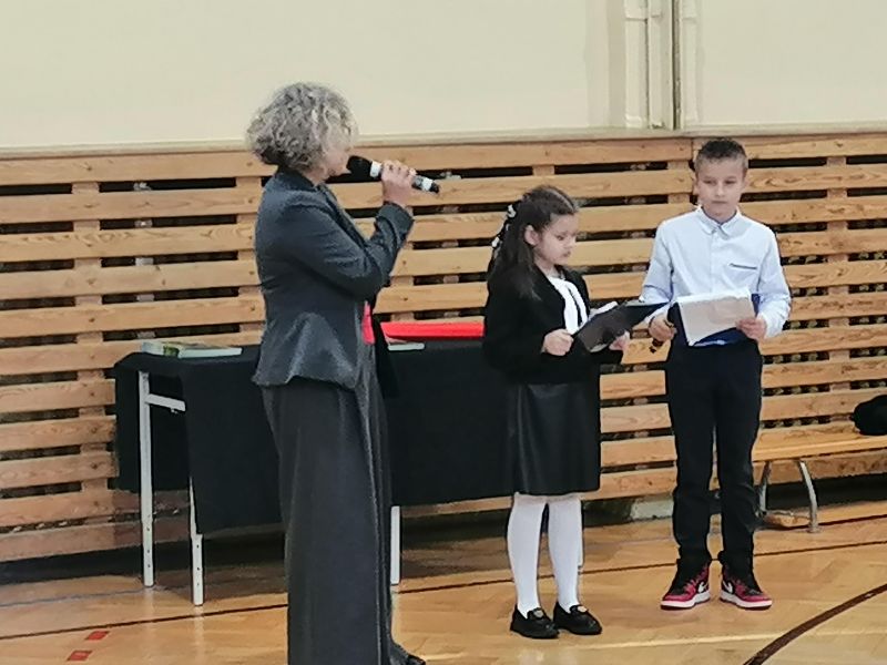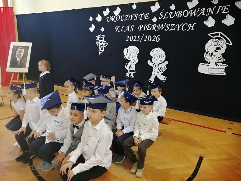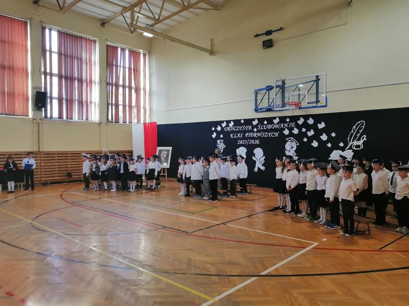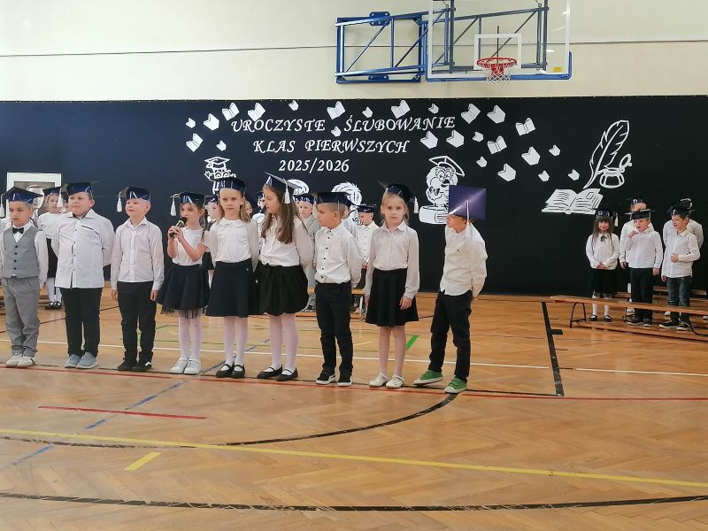 Dnia 14 października 2025r. odbyła się w naszej szkole uroczystość Ślubowania uczniów klas pierwszych. W niezwykle podniosłej atmosferze, przed pocztem sztandarowym uczniowie ślubowali być dobrymi Polakami, godnie reprezentować swoją szkołę i klasę, swym zachowaniem i nauką sprawiać radość rodzicom i nauczycielom. Po złożeniu ślubowania Pani Dyrektor Janina Zając dokonała symbolicznego aktu pasowania na ucznia. Dzieci otrzymały pamiątkowe dyplomy. Zanim jednak maluchy zostały przyjęte do grona społeczności szkolnej musiały przedstawić to, czego już się w szkole nauczyły. Gotowi, odświętnie ubrani i bardzo przejęci przystąpili do zaprezentowania swoich umiejętności. Ślubowanie uczniów klas pierwszych to bardzo ważne wydarzenie nie tylko dla najmłodszych, ale również dla ich rodziców oraz całej społeczności szkolnej. Pięknie zaśpiewane piosenki oraz z przejęciem wyrecytowane wiersze wycisnęły niejedną łezkę z oczu bliskich. Po zakończeniu części oficjalnej wszyscy uczestnicy udali się do klas na słodki poczęstunek przygotowany przez rodziców. Ten dzień na długo pozostanie w pamięci nas wszystkich.