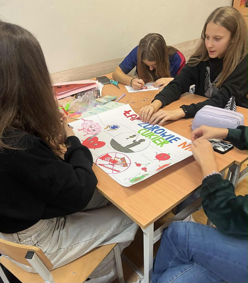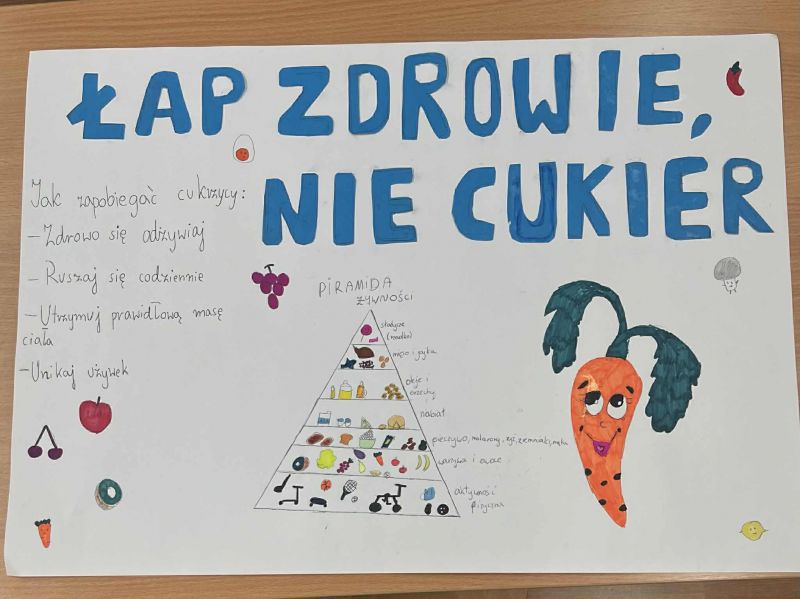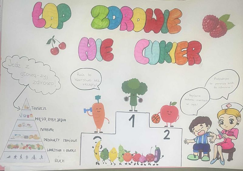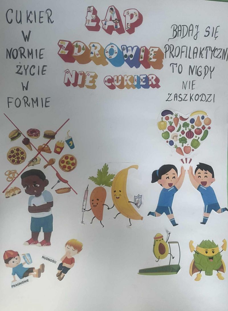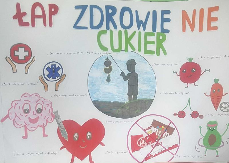W związku ze zbliżającym się Światowym Dniem Cukrzycy (14 listopada) nasi uczniowie wzięli udział w konkursie plastycznym „Łap zdrowie, a nie cukier!”, organizowanym pod patronatem Miasta Legionowo.