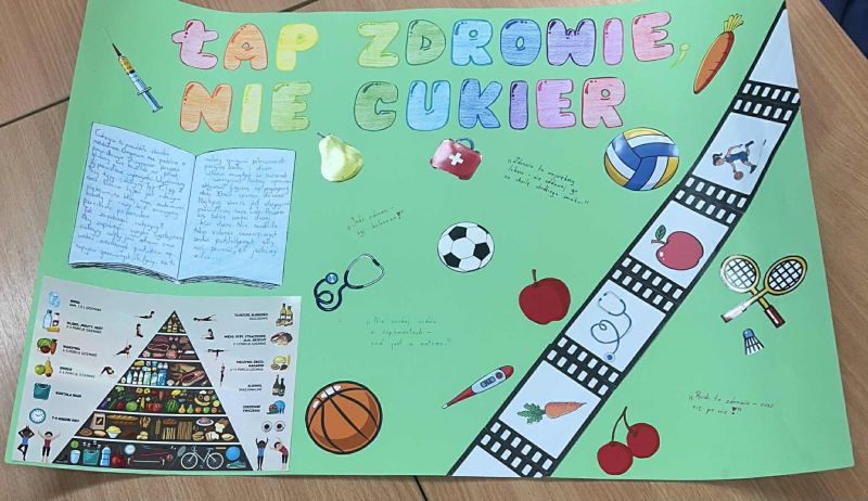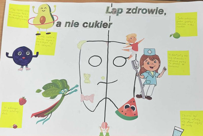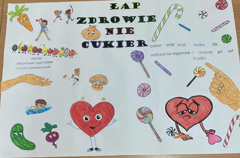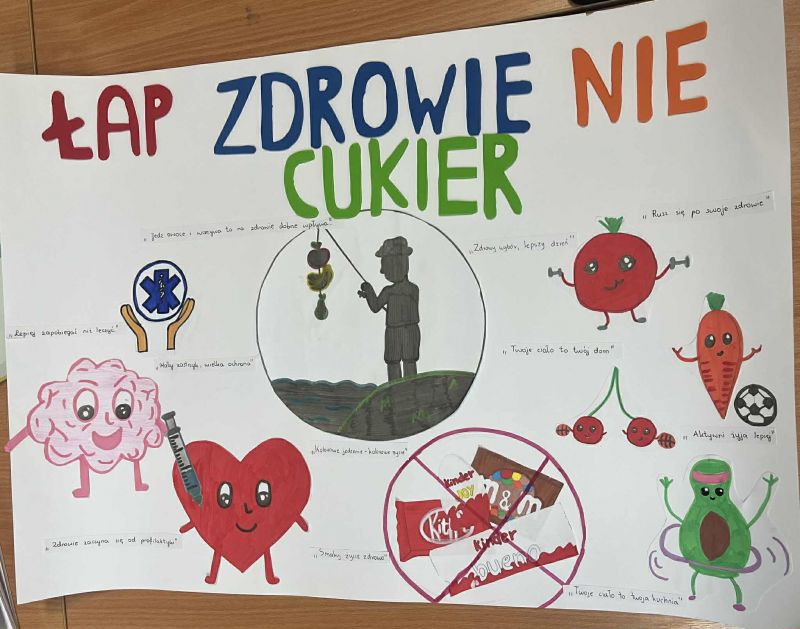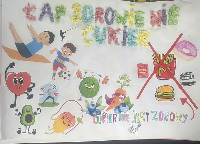 Uczniowie naszej szkoły przygotowali przepiękne, pomysłowe i pełne kolorów prace plastyczne, które w oryginalny sposób ukazują, że warto wybierać zdrowie zamiast nadmiaru cukru.