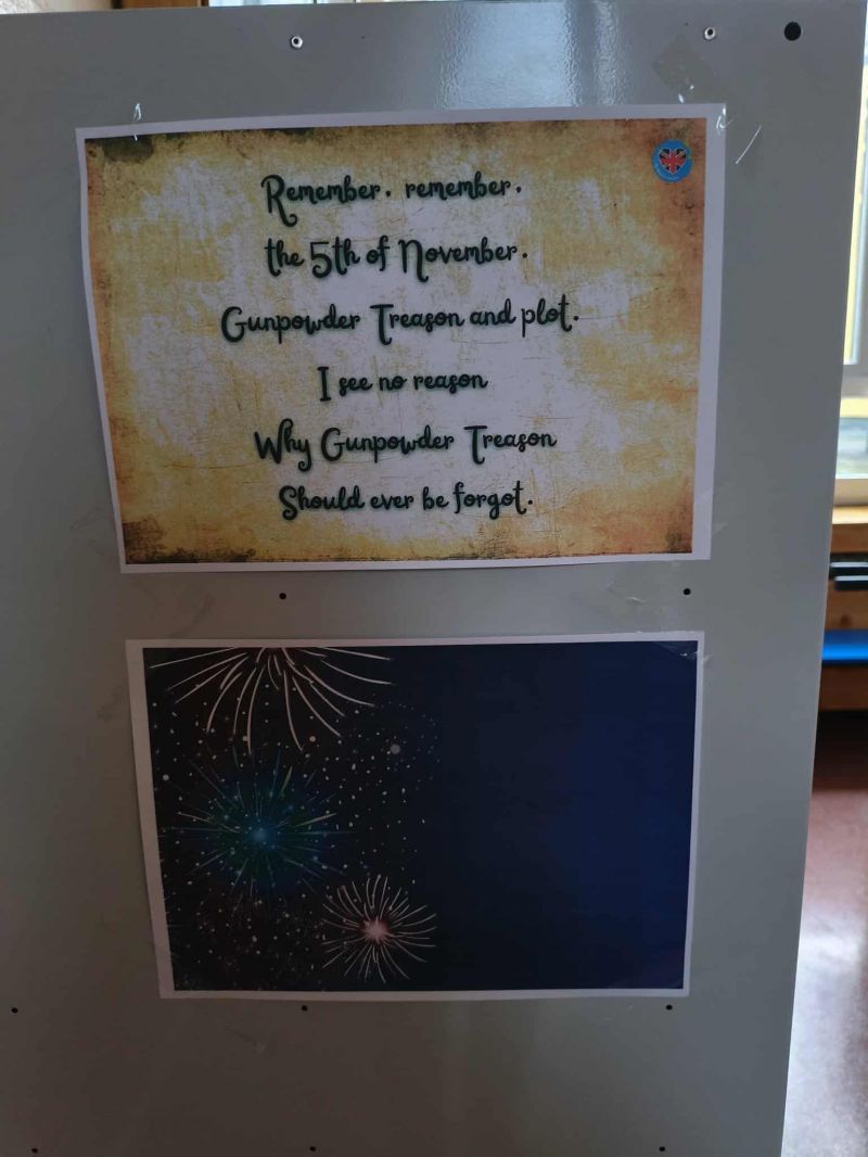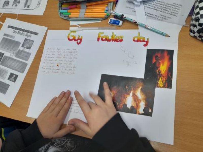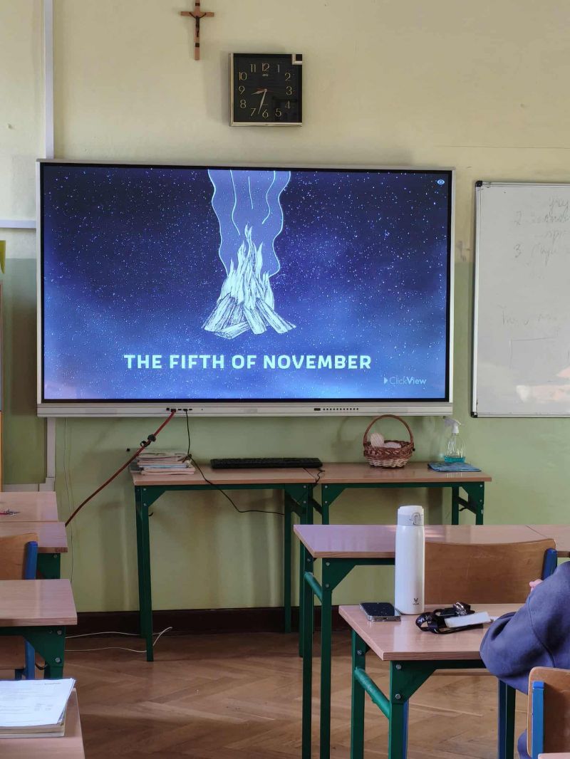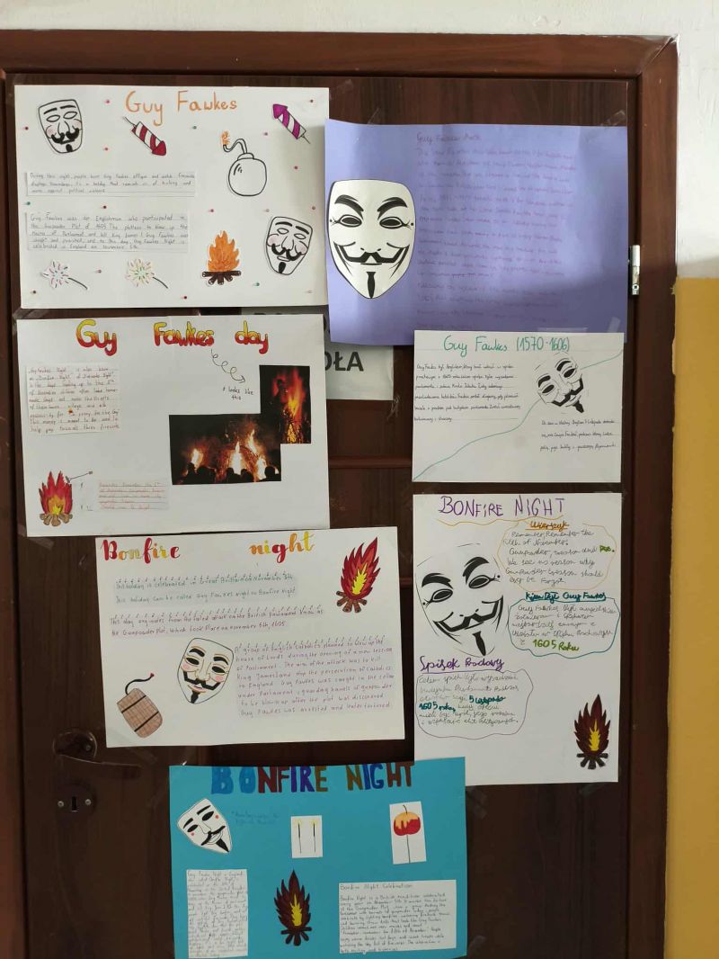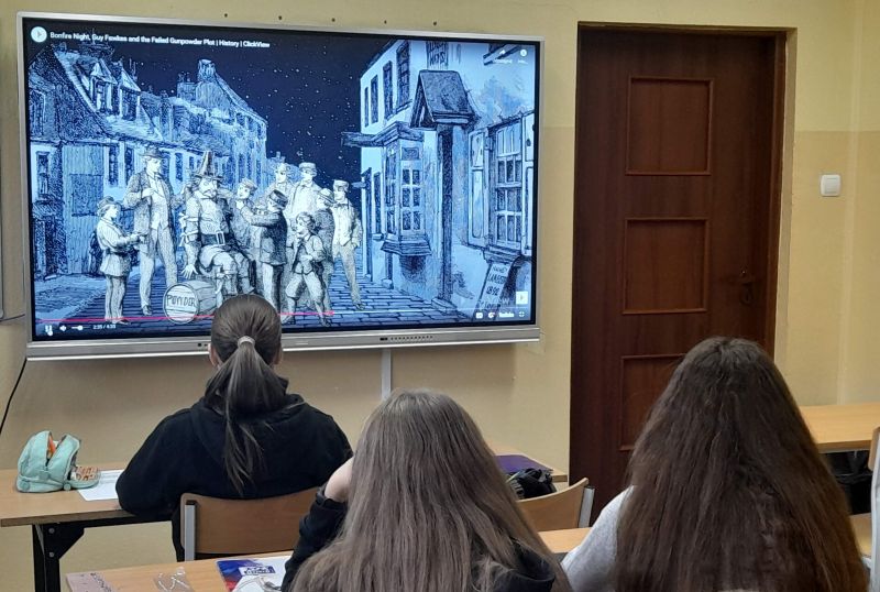 Podczas zajęć języka angielskiego uczniowie poznali historię spisku prochowego z 1605 roku oraz współczesne tradycje związane z tym dniem – ogniska, pokazy fajerwerków i parady. W ramach lekcji obejrzeli prezentację o obchodach tego święta, czytali rymowankę „Remember, remember the 5th of November”, oglądali krótki film edukacyjny oraz sprawdzili swoją wiedzę w quizie Kahoot i zadaniach z czytania ze zrozumieniem.