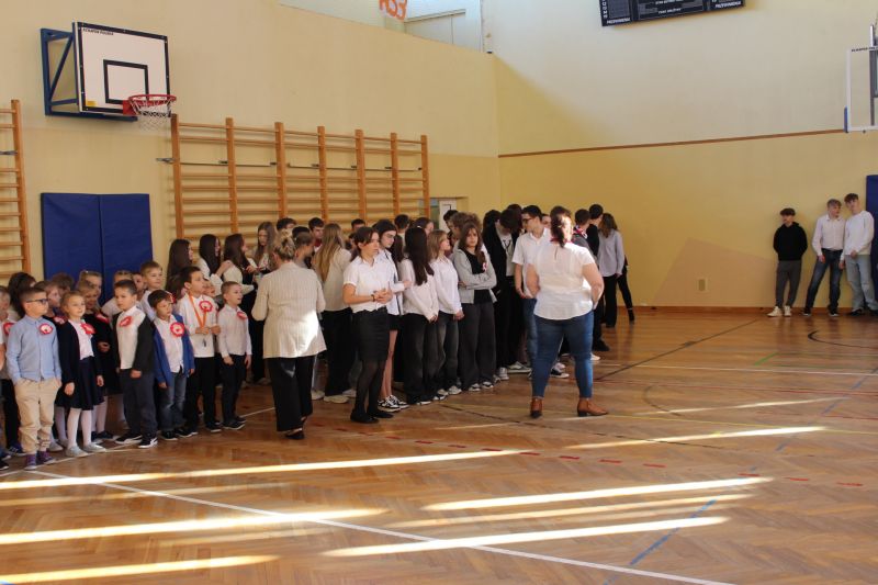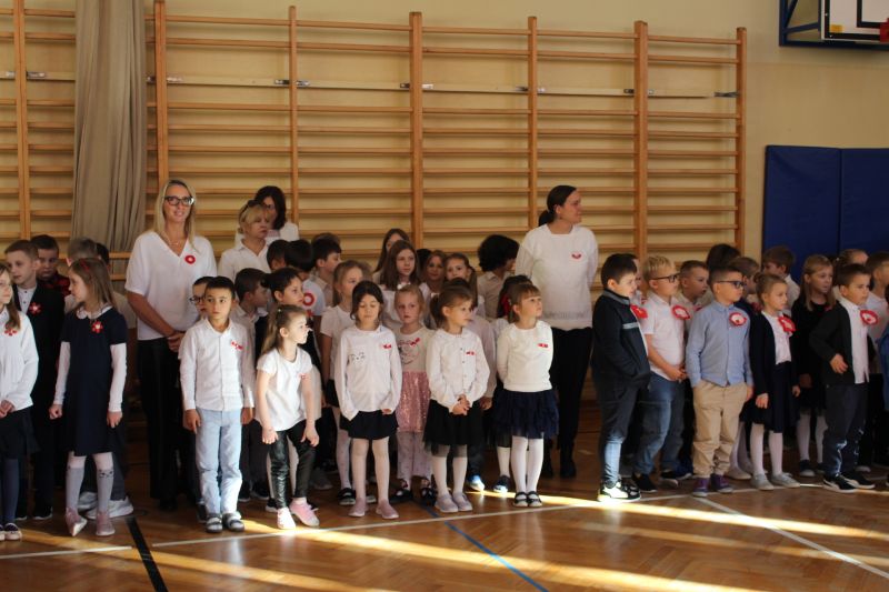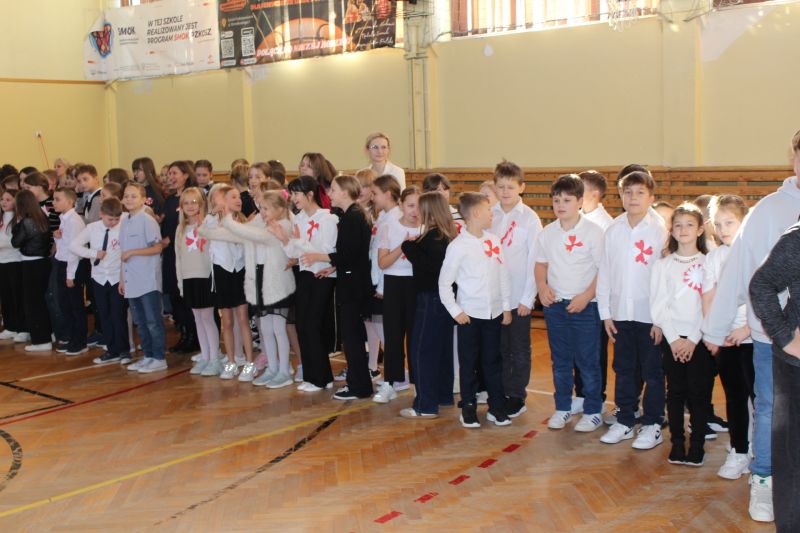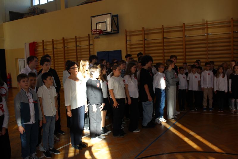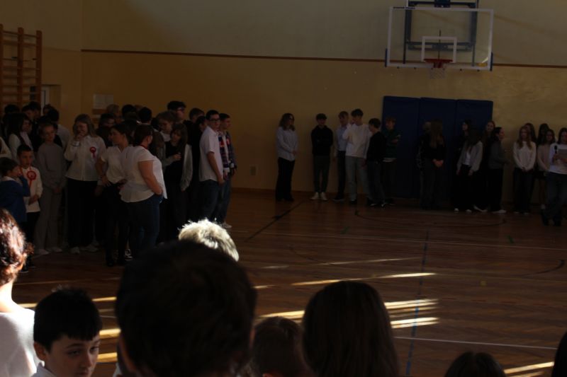 O symbolicznej godzinie 11:11 cała społeczność szkolna zebrała się na sali gimnastycznej, aby wspólnie odśpiewać hymn państwowy – Mazurka Dąbrowskiego.