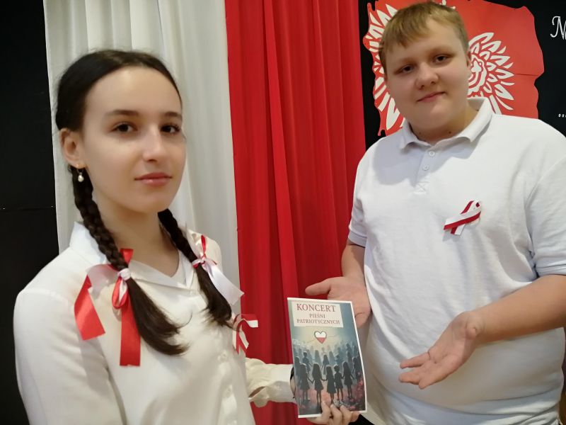 Kulminacyjnym momentem był koncert pieśni patriotycznej, który poruszył publiczność do głębi. Ogromne wrażenie wywarły wykonania utworów symbolicznych dla polskiej historii: „Murów" Jacka Kaczmarskiego oraz „Białego Krzyża”, które w niezwykle dojrzały i przejmujący sposób zaprezentowali najmłodsi — uczniowie klas 1–3. Ich występ, pełen emocji i dziecięcej szczerości, wywołał wśród widzów prawdziwe wzruszenie i długie, gorące brawa.