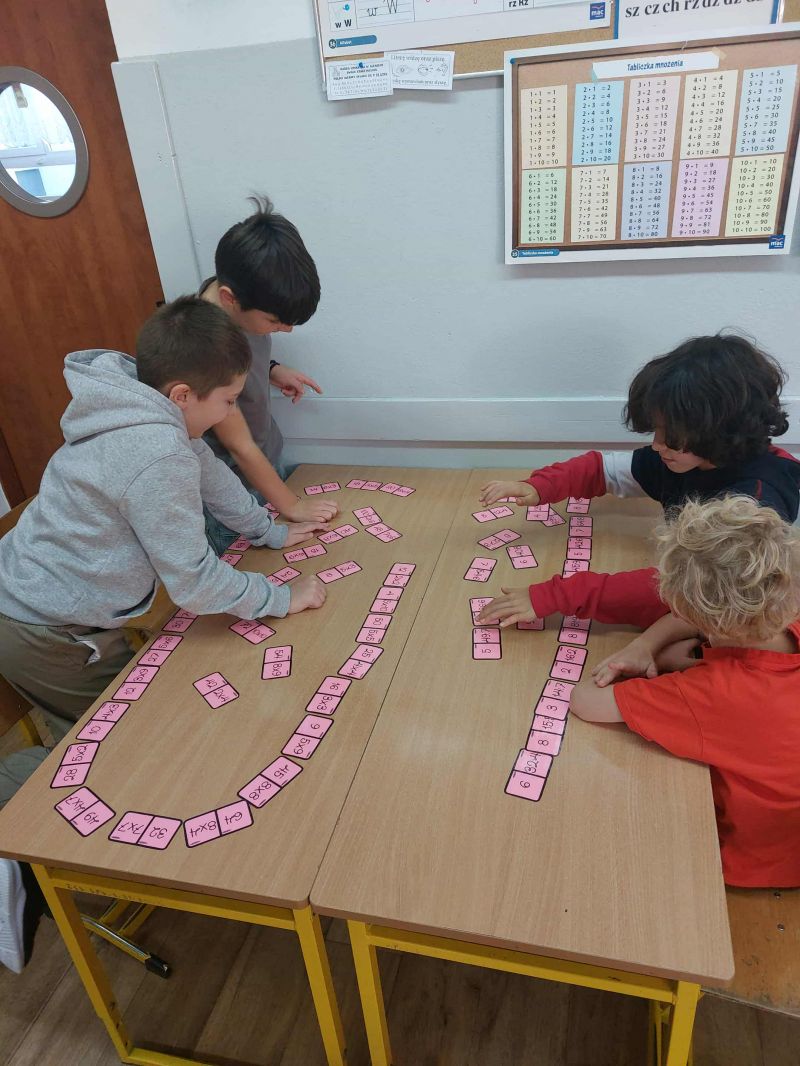 - Gry i zabawy matematyczne – dzieci rozwiązywały zagadki, układały matematyczne puzzle oraz brały udział w zabawach ruchowych i grach utrwalających mnożenie.