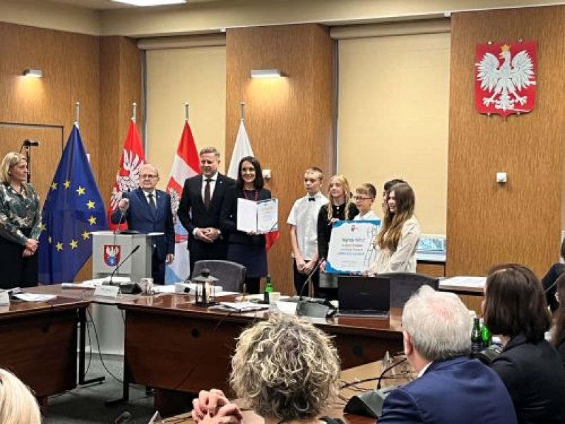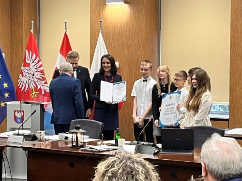 Uroczyste wręczenie nagród w konkursie „Kamera, akcja, hulajnoga" na sesji Rady Miasta Legionowo.