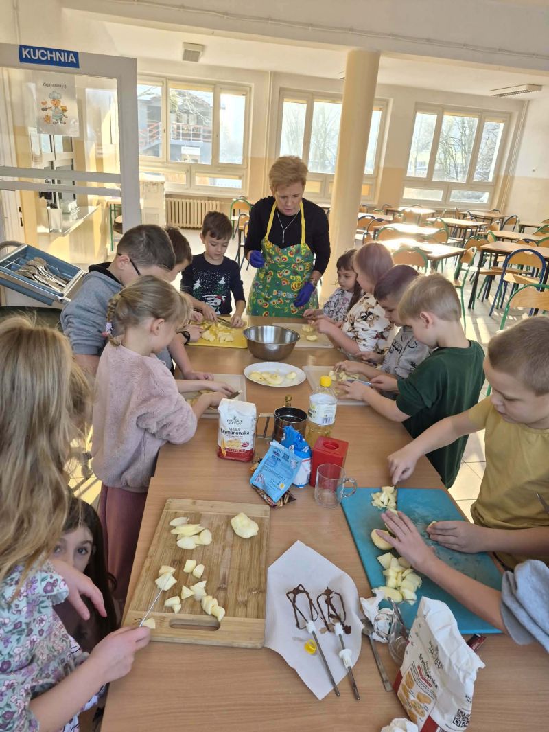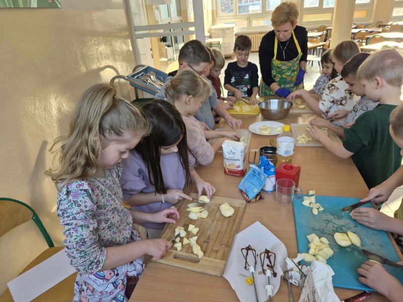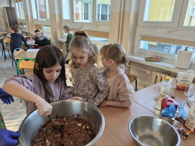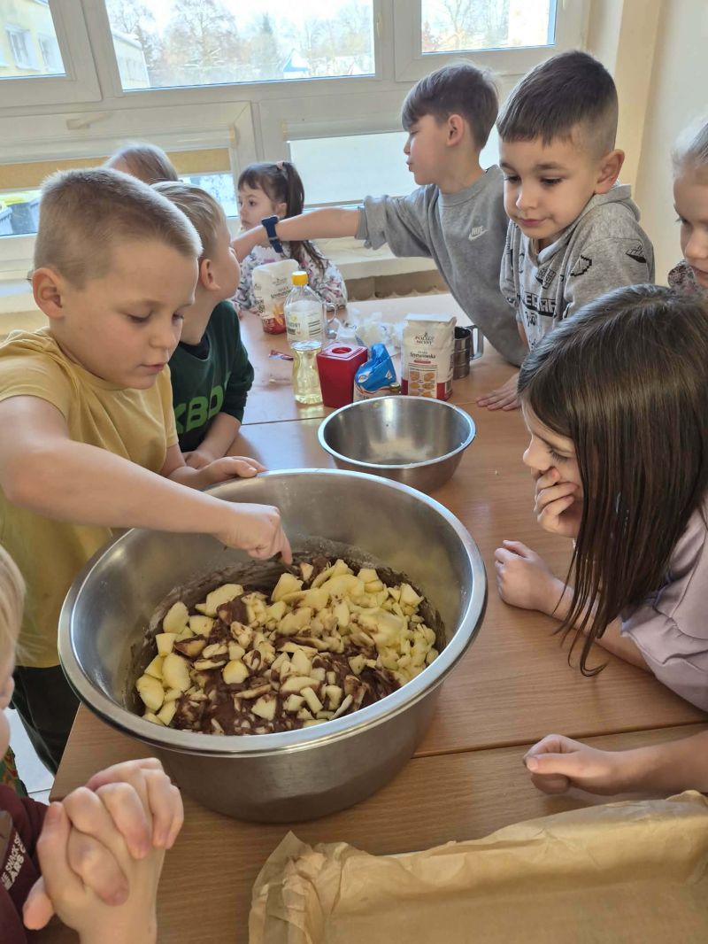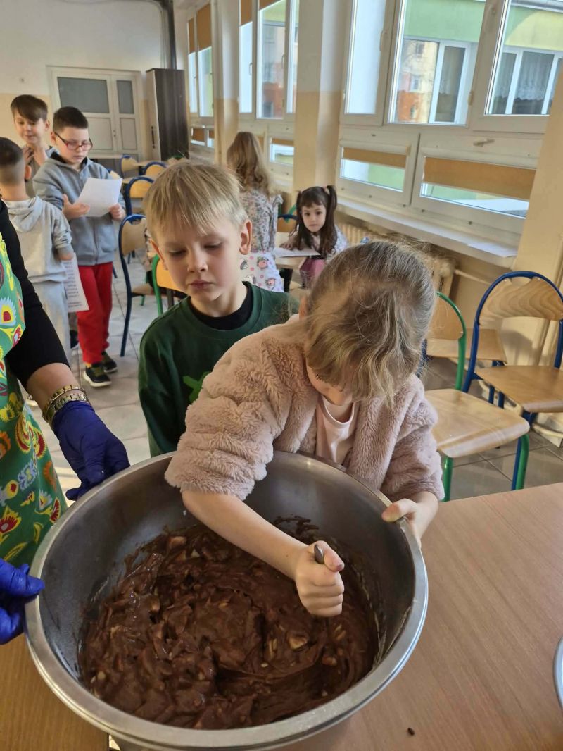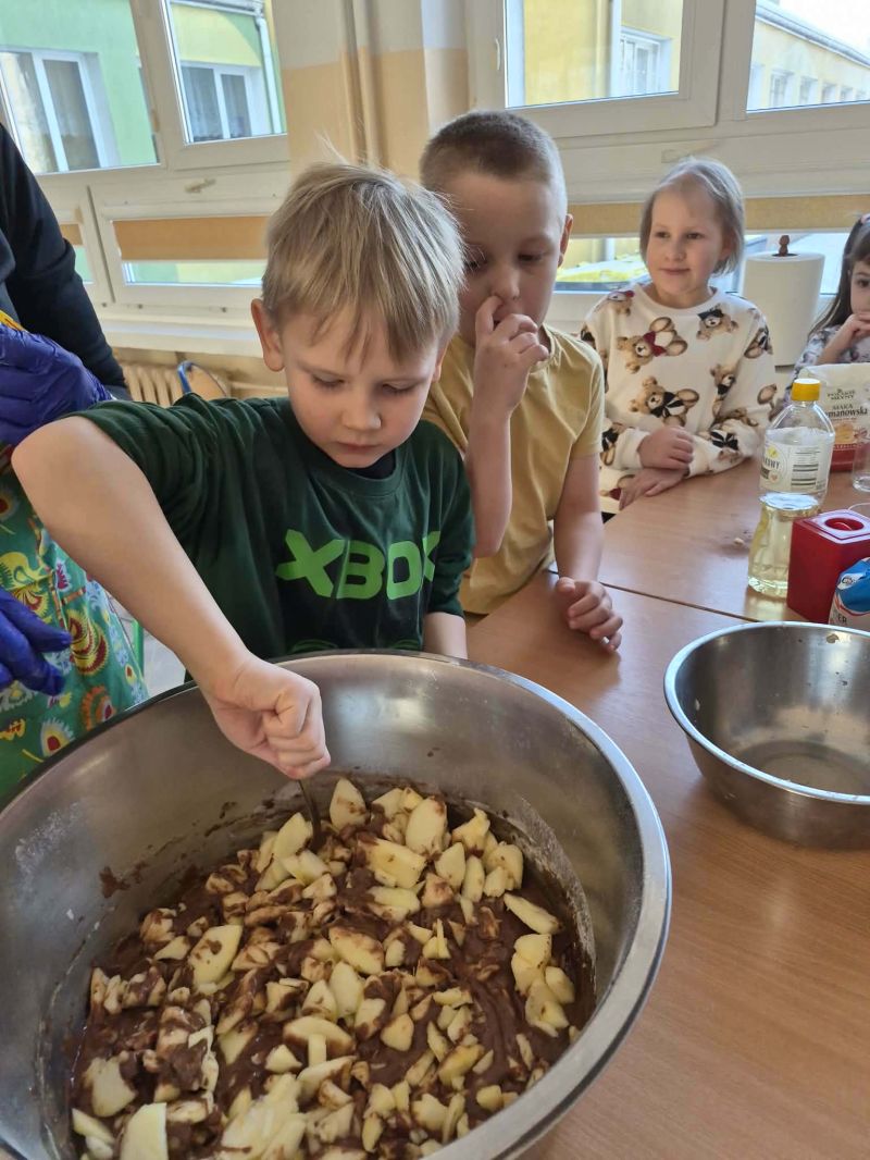 Podczas zajęć wspólnie przygotowali ciasto, przekonując się, że matematyka przydaje się także w kuchni.
