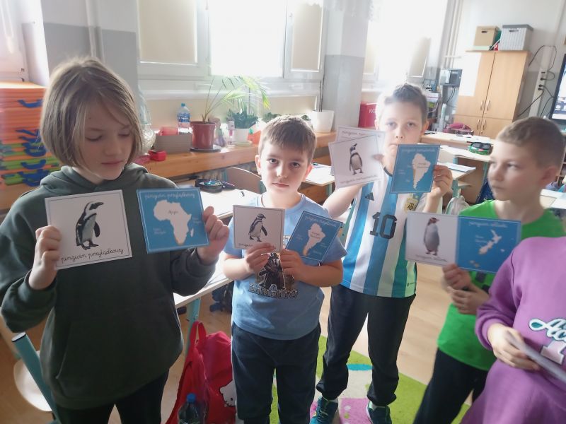 Podczas zajęć uczniowie klasy 2a przyglądali się różnym gatunkom pingwinów – poznawali ich wielkości, rozmiary, wygląd oraz miejsca życia. Dowiedzieli się, gdzie na świecie można je spotkać, czym się żywią i jak radzą sobie w trudnych, zimowych warunkach. Nie zabrakło wielu ciekawostek i zaskakujących informacji!