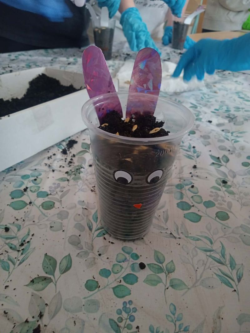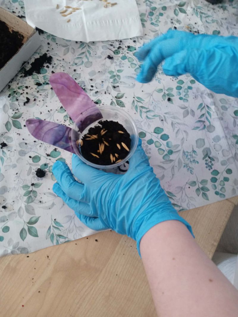 Następnie przystąpiły do działania – samodzielnie wysiewały nasiona owsa do przygotowanej ziemi, a przy tym wykazały się dużą kreatywnością, dekorując swoje prace. Było mnóstwo radości i dobrej zabawy!