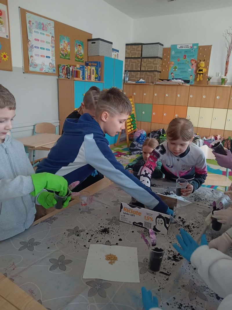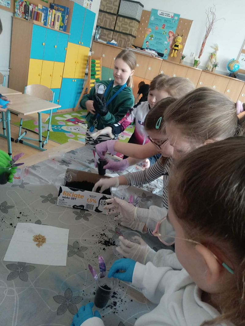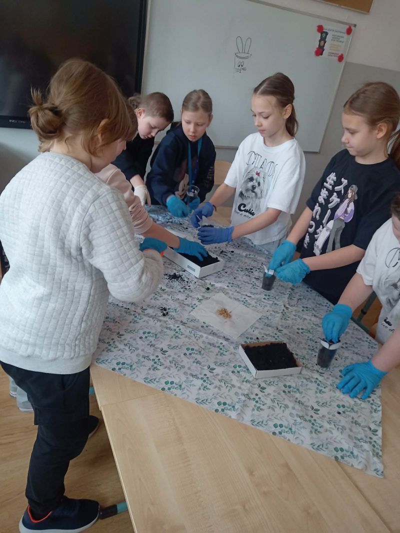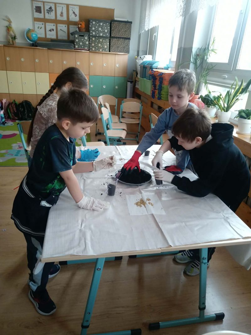 Uczniowie klasy 2a wzięli udział w warsztatach przyrodniczych, podczas których zamienili się w małych ogrodników. Na początku zajęć przypomnieli sobie budowę rośliny oraz to, czego potrzebuje ona do prawidłowego wzrostu. Dzieci miały okazję obejrzeć modele fasoli i tulipana, co pomogło im lepiej zrozumieć omawiane zagadnienia.