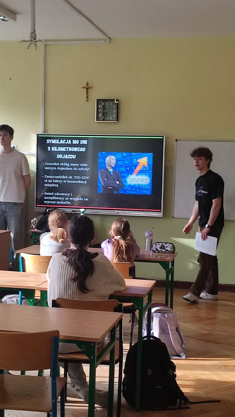 "W ostatnim czasie uczniowie LO im. Marii Konopnickiej w Legionowie i CV LO im. Zbigniewa Herberta w Warszawie przeprowadzili cykl edukacyjnych spotkań z klasami 4-5 w naszej szkole. Prowadzący opowiedzieli o wielu korzyściach płynących z jazdy na rowerze, a także zachęcili uczniów do wspólnej rywalizacji na platformie strava. Spotkania odbyły się z inicjatywy zespołu “TakeBike” w ramach ogólnopolskiej olimpiady Zwolnieni z Teorii."