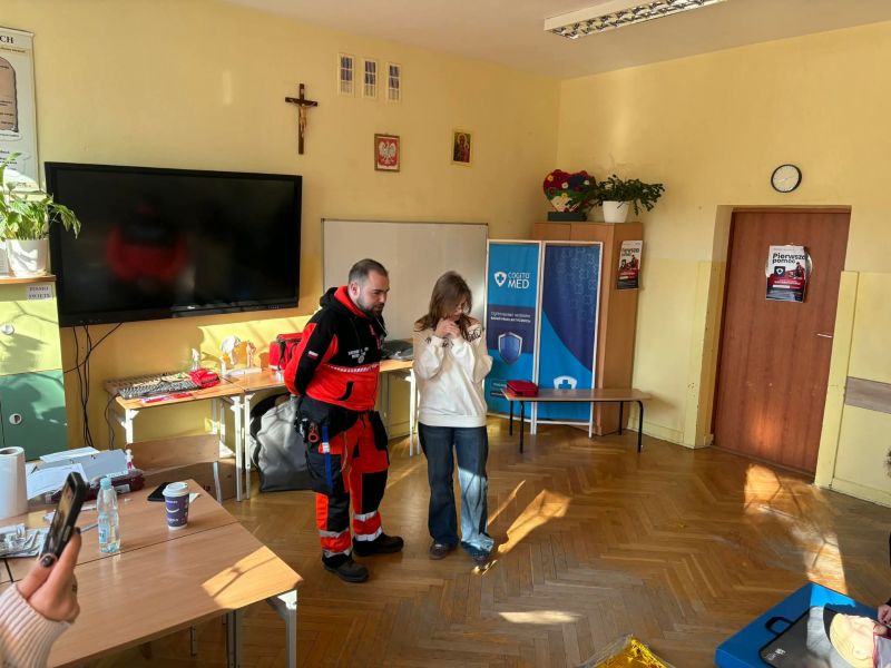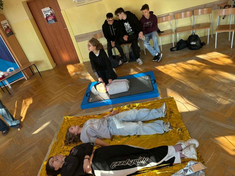 W dniach od 23 marca do 17 kwietnia 2026 w naszej szkole odbywały się zajęcia z pierwszej pomocy przedmedycznej dla klas VII-VIII w ramach: "Programu profilaktyki zdrowotnej z zakresu pierwszej pomocy przedmedycznej dla uczniów klas VII-VIII z województwa mazowieckiego na lata 2025-2026".